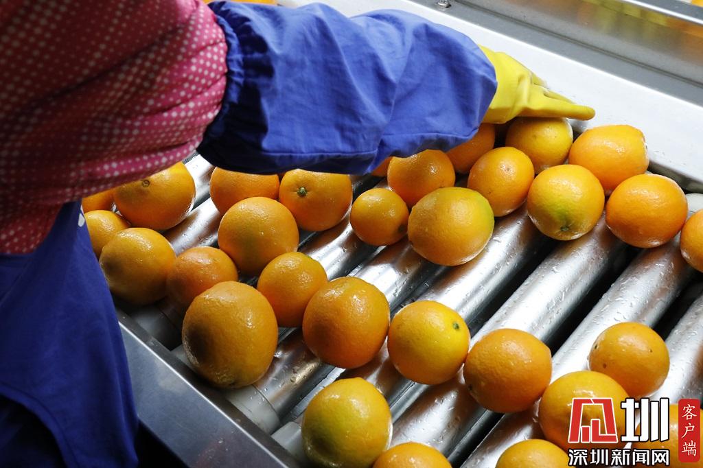 一位工作人員正在檢查臍橙質(zhì)量。
