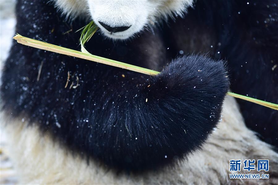 11月29日,在西寧熊貓館內,兩只大熊貓在吃竹子。 當日,青海省西寧市迎來降雪,西寧熊貓館四只“萌寵”大熊貓在雪天里享受著吃竹子的樂趣。據(jù)了解,大熊貓生活的適宜溫度在26攝氏度至零下5攝氏度之間,冬季氣溫低于零下5攝氏度時,場館會啟用保暖設施。 新華社記者 吳剛 攝