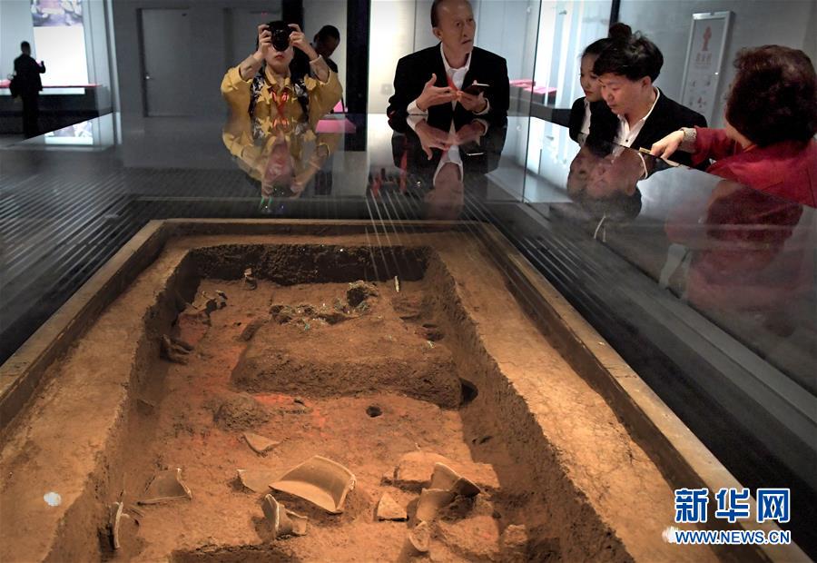 10月19日,參觀者在二里頭夏都遺址博物館內(nèi)觀看展出的陶器。新華社記者李安攝