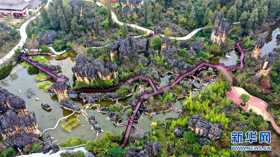 11月28日,空中俯瞰石林景區(qū)(無(wú)人機(jī)拍攝)。新華社記者江文耀攝
