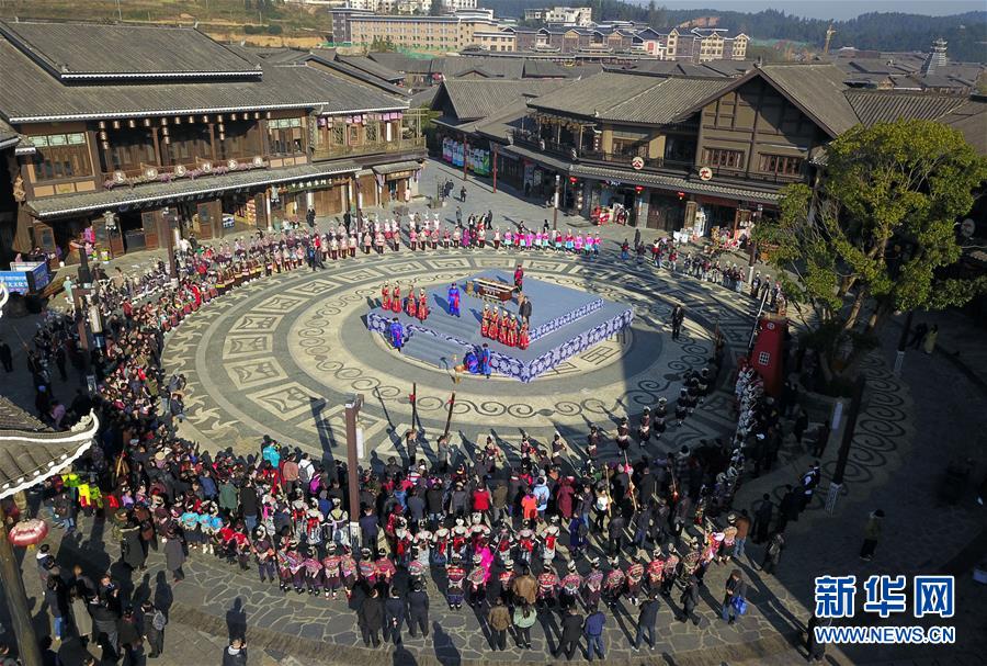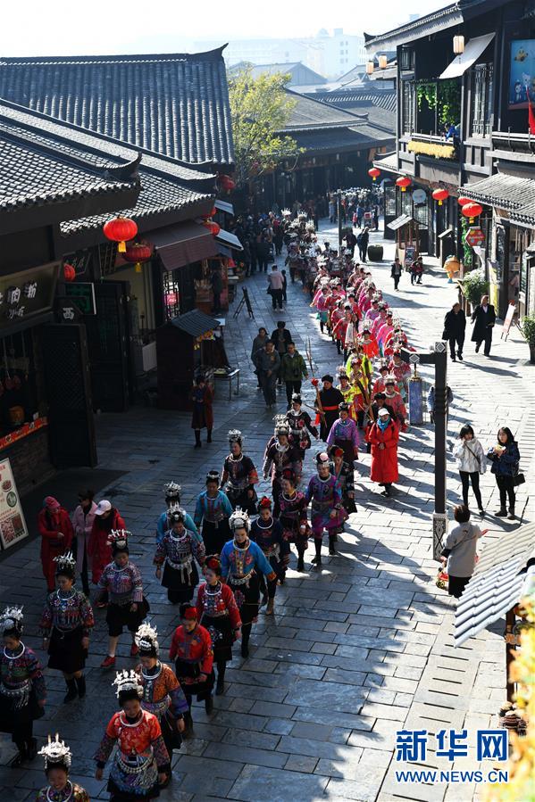 當(dāng)日,貴州省黔東南苗族侗族自治州丹寨縣迎來(lái)苗族傳統(tǒng)節(jié)日“祭尤節(jié)”,近千名身著節(jié)日盛裝的苗族群眾與游客齊聚丹寨萬(wàn)達(dá)小鎮(zhèn),歡度傳統(tǒng)佳節(jié)。