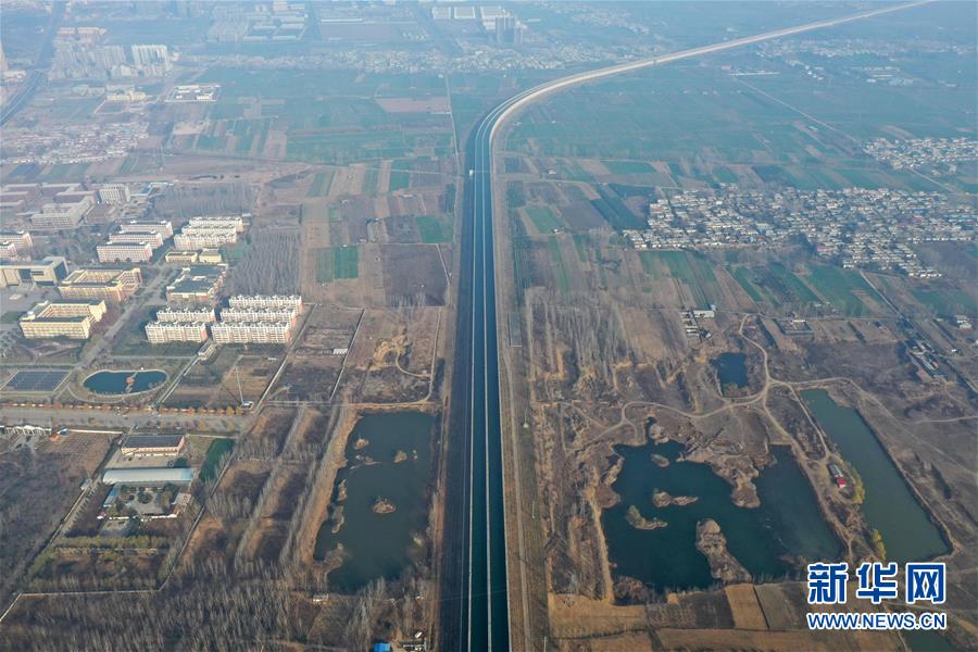 這是12月9日無人機(jī)拍攝的南水北調(diào)中線總干渠沙河渡槽工程。新華社記者馮大鵬攝