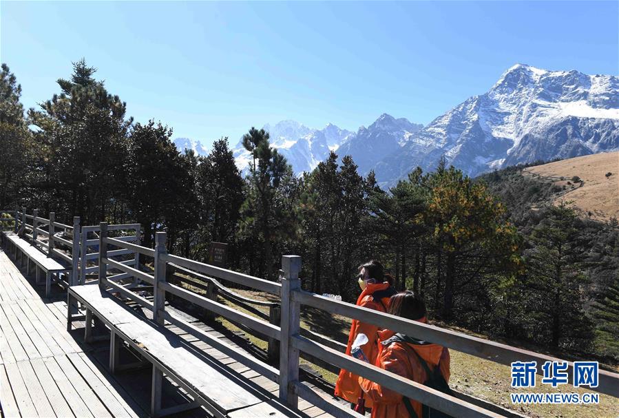 初冬的云南省麗江玉龍雪山景色秀美,吸引游客前來觀光。