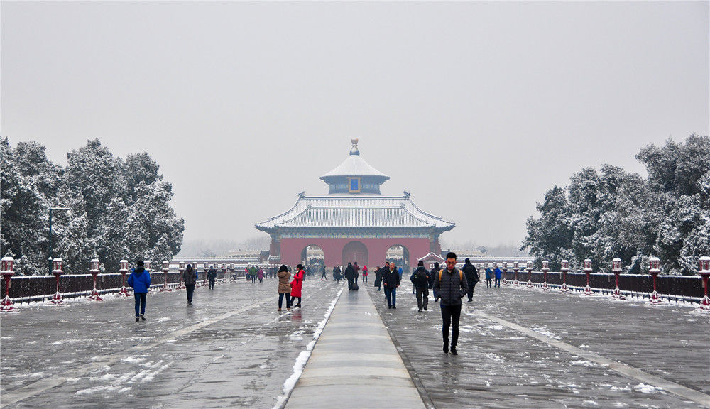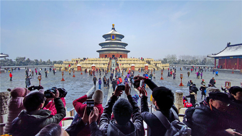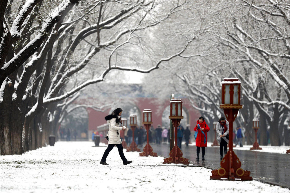 2019年11月30日,北京,天壇公園里觀雪賞景的市民絡(luò)繹不絕。喬健/千龍圖像/視覺中國(guó)