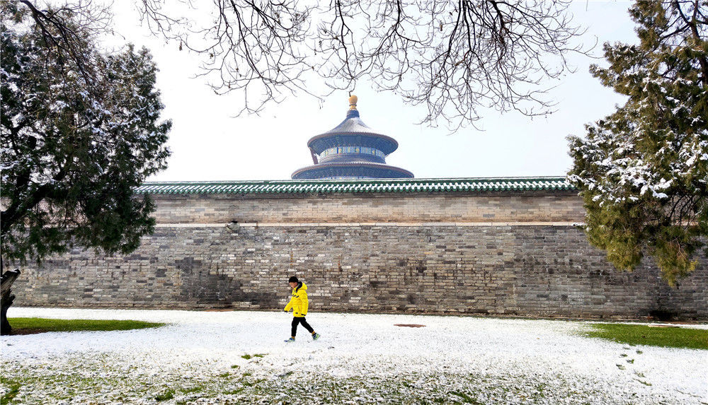 2019年11月30日,民眾在北京天壇公園內(nèi)賞雪。29日,北京迎來2019年冬季初雪。富田(攝影部)/中新社/視覺中國(guó)