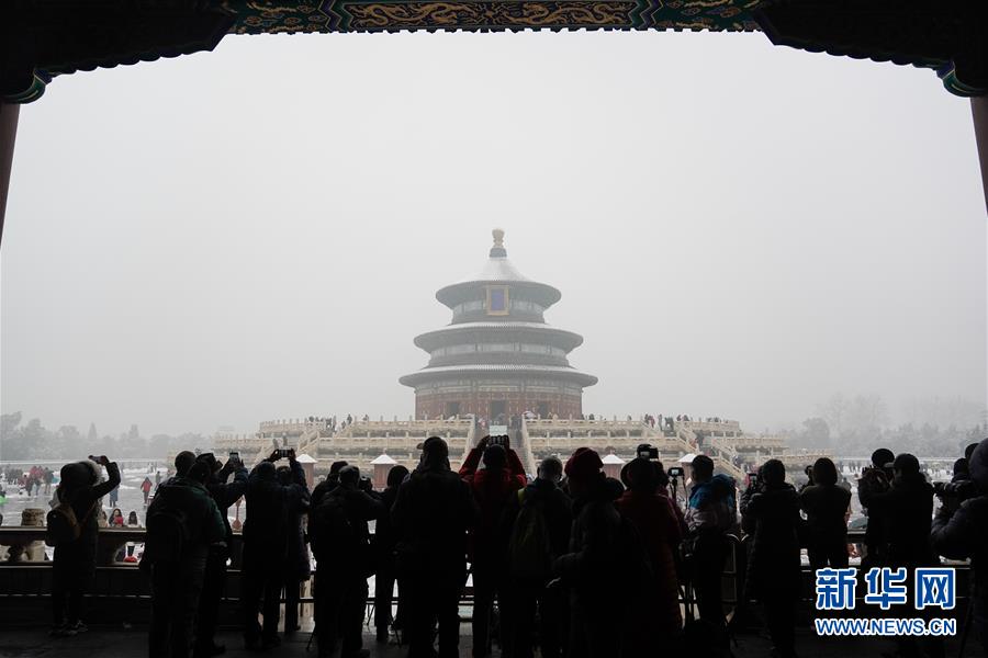 2019年11月30日,北京,初雪過后,天壇公園銀裝素裹,白雪古建相互映襯,景色迷人。天壇公園里觀雪賞景的市民絡(luò)繹不絕。喬健/千龍圖像/視覺中國(guó)