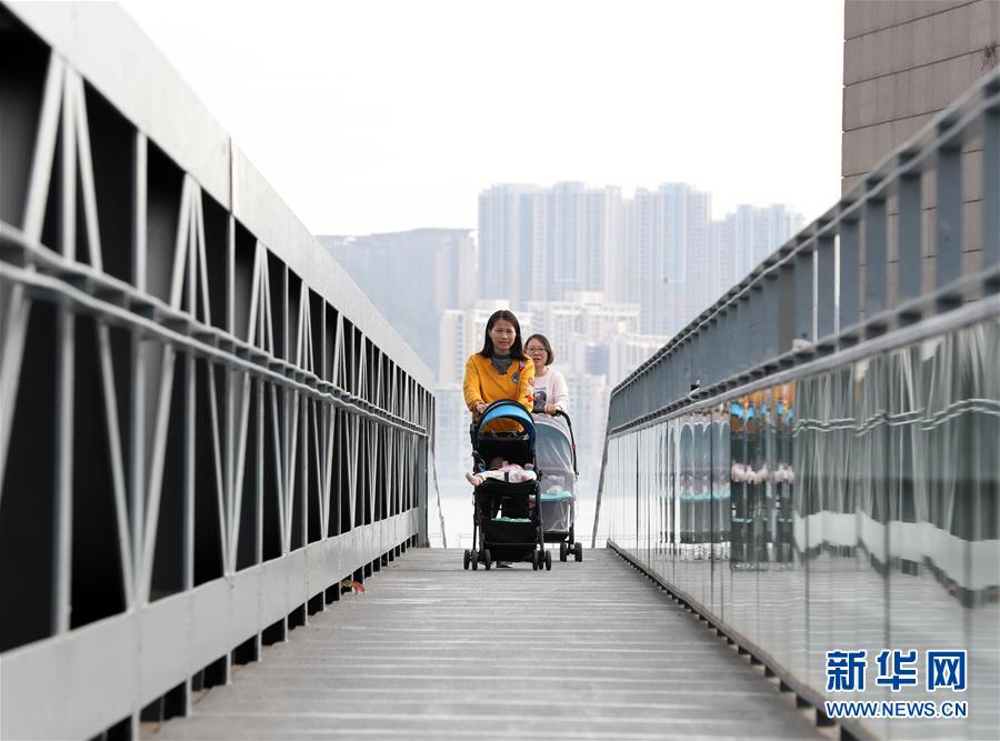在澳門(mén)科學(xué)館附近,兩名女士推著嬰兒車過(guò)橋(12月17日拍攝)。新華社記者李鋼攝