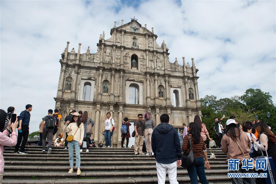 12月17日,游客在澳門(mén)大三巴牌坊游覽。新華社記者杜宇攝