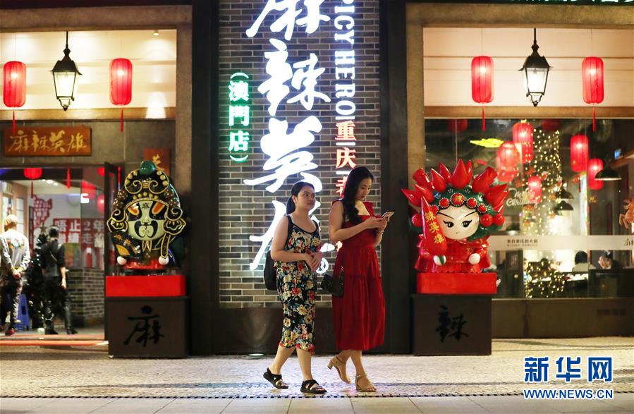 12月17日,在澳門(mén)漁人碼頭附近,人們從一家火鍋店門(mén)前經(jīng)過(guò)。新華社記者李鋼攝