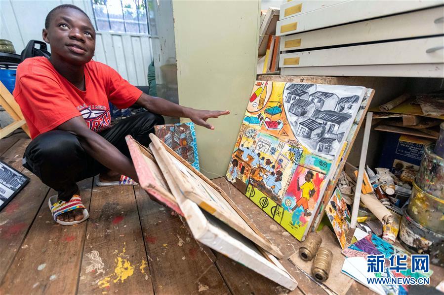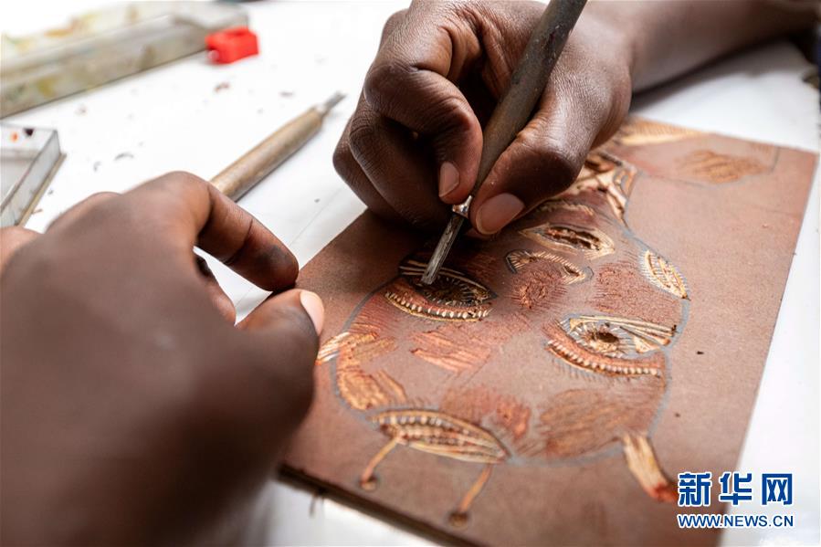 12月20日,在肯尼亞內(nèi)羅畢庫(kù)奧納藝術(shù)中心,一名藝術(shù)家在工作室內(nèi)創(chuàng)作作品。  新華社記者 王騰 攝