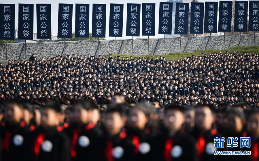 12月13日拍攝的南京大屠殺死難者國家公祭儀式現(xiàn)場。 當(dāng)日是第六個(gè)南京大屠殺死難者國家公祭日,南京大屠殺死難者國家公祭儀式在侵華日軍南京大屠殺遇難同胞紀(jì)念館舉行。 新華社記者 李響 攝