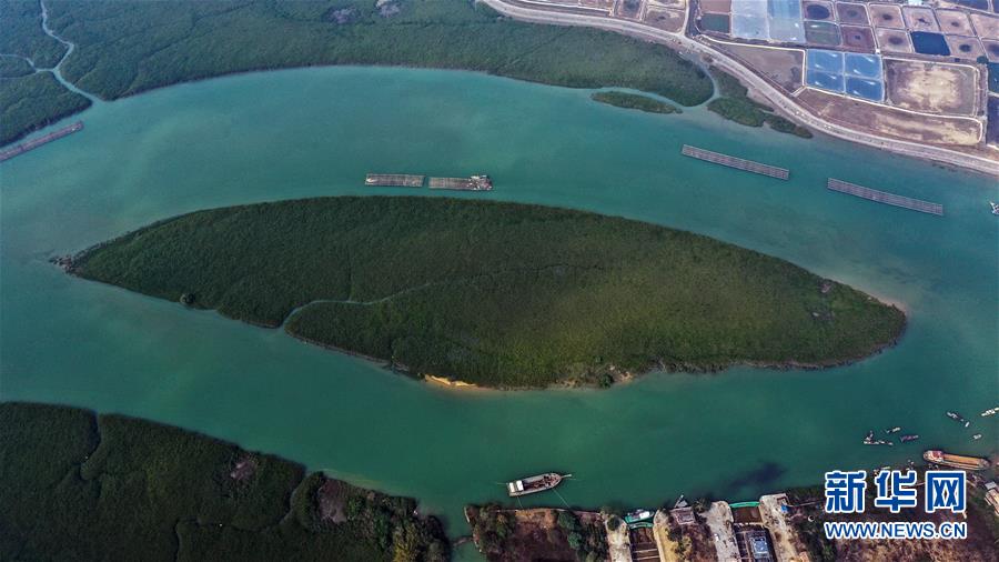 12月21日無人機拍攝的廣西合浦縣黨江鎮(zhèn)更螺圍出??谝痪?。冬日,廣西廉州灣海域風(fēng)光別致。新華社記者張愛林攝