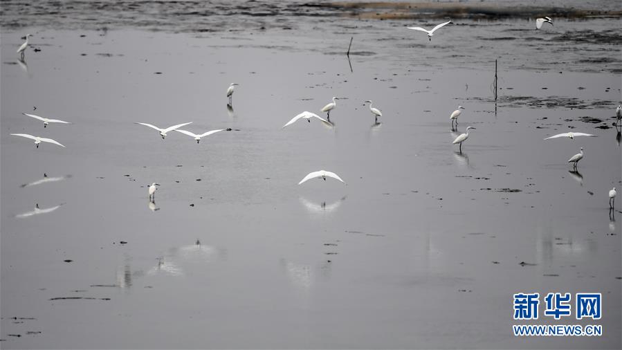 12月21日,白鷺在廣西合浦縣黨江鎮(zhèn)更螺圍出海口處棲息。冬日,廣西廉州灣海域風光別致。新華社記者張愛林攝