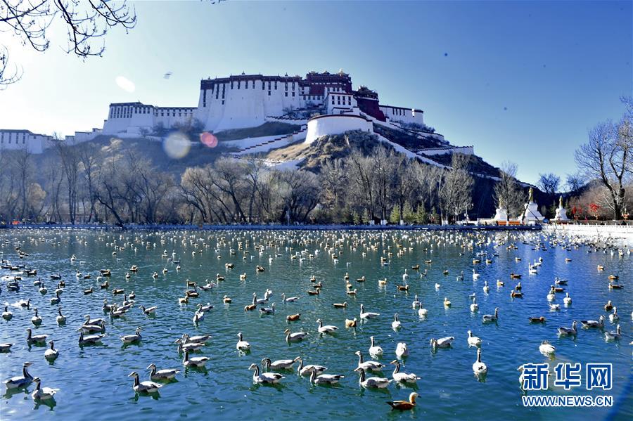 群鳥在龍王潭公園的水面上游弋(12月20日攝)。新華社記者張汝鋒攝