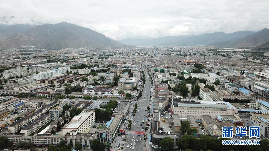 8月10日無(wú)人機(jī)拍攝的拉薩城市一景。新華社記者王益亮攝