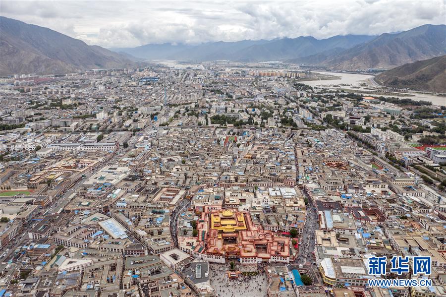 鳥(niǎo)瞰拉薩古城(8月10日無(wú)人機(jī)拍攝)。新華社記者晉美多吉攝