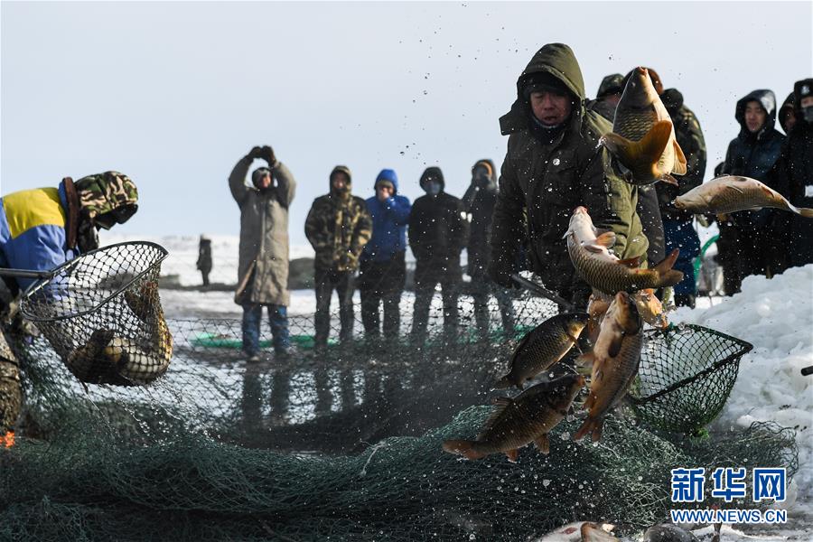 2018年12月26日,吉林松原,查干湖迎來了“紅網(wǎng)”,單網(wǎng)捕撈約30萬斤。