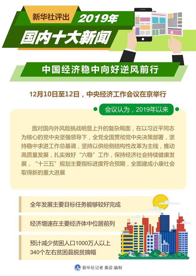 圖表:新華社評出2019年國內(nèi)十大新聞 新華社記者 陳聰穎 編制