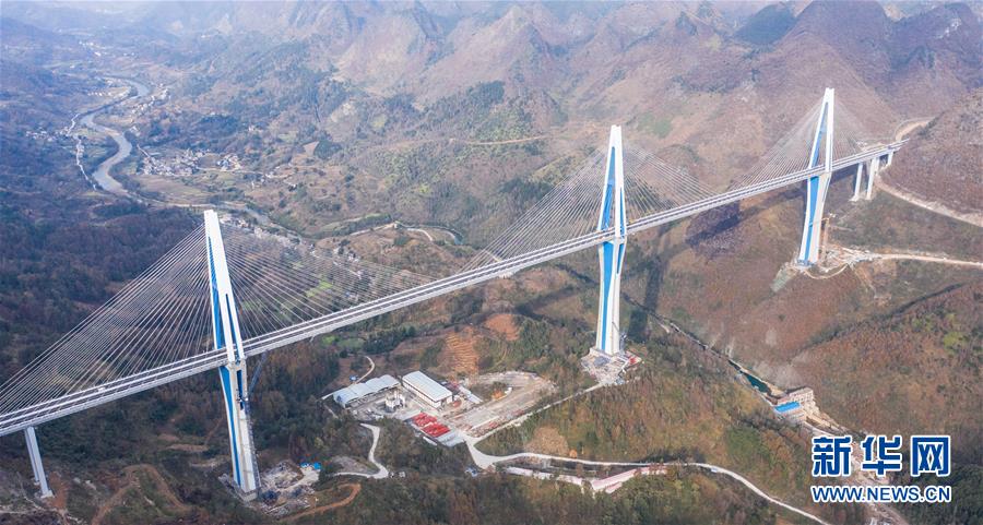 12月30日拍攝的貴州平塘特大橋橋塔。新華社記者楊文斌攝