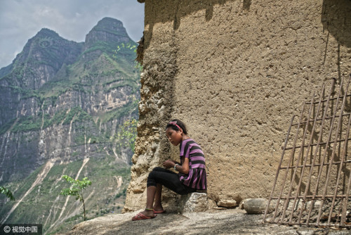 4月27日,阿土勒爾村的一個(gè)村民摔下了懸崖,村子里的大人對在山下讀書的孩子更加擔(dān)心起來。阿土勒爾村有15個(gè)6至15歲的孩子在山腳下的勒爾小學(xué)上學(xué),平時(shí)住校,每月月中和月底的周末才回家。每次上下山,家長們都會輪流接送。圖片來源:視覺中國