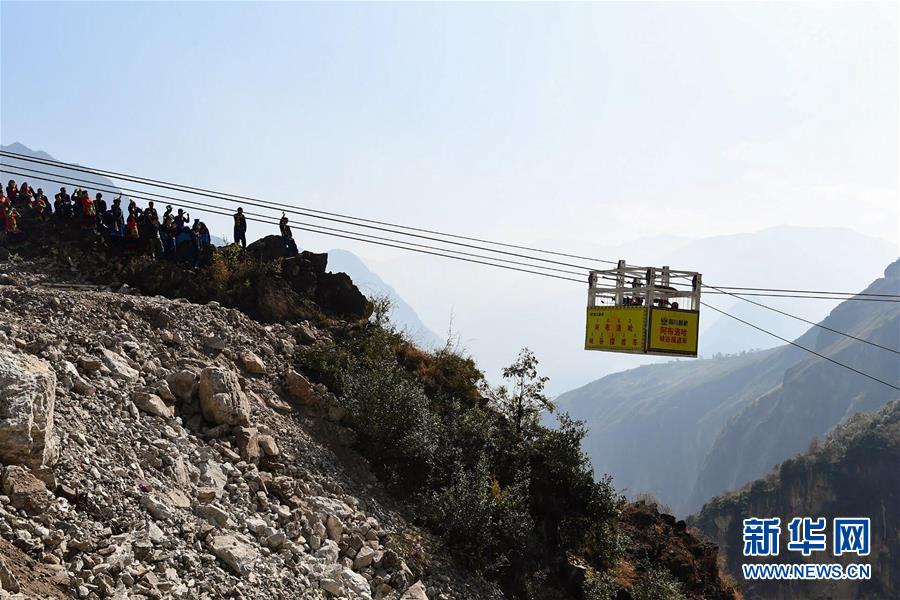 阿布洛哈擺渡車在峽谷兩岸運(yùn)行調(diào)試(2019年12月30日攝)。新華社記者江宏景攝