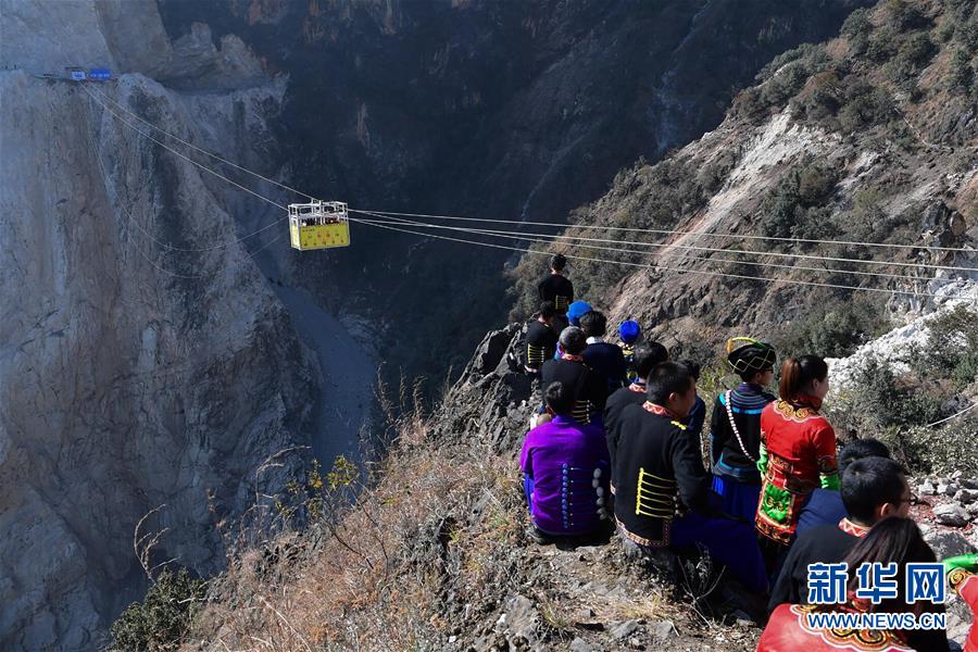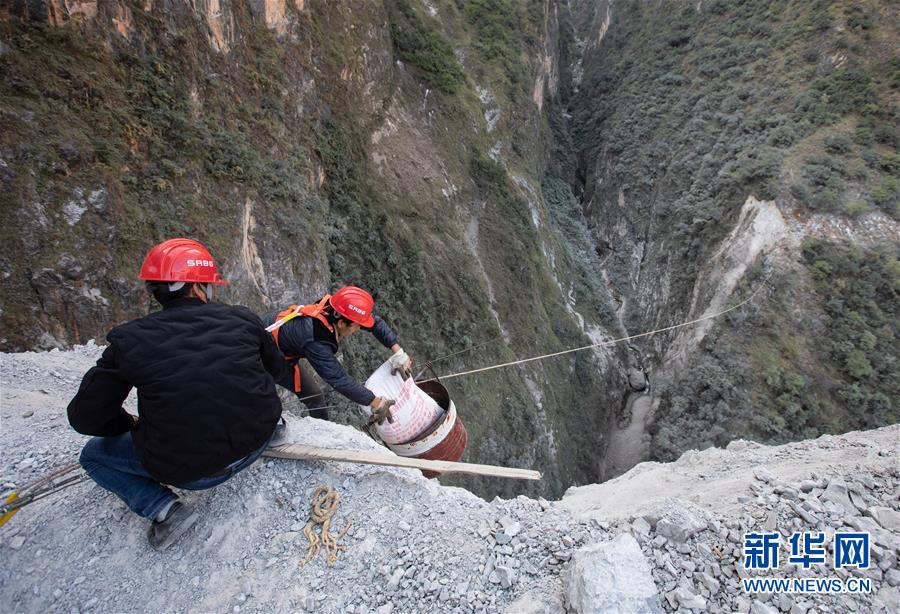 阿布洛哈村三面環(huán)山,幾乎全是懸崖絕壁;一面依水,金沙江支流西溪河流淌而過。以前,村民們進(jìn)出村需攀爬懸崖上鑿出來的一條小路;村里的物資主要靠馬馱人背,走一趟要3個(gè)多小時(shí)。交通成為村里脫貧攻堅(jiān)最大的“硬骨頭”,全村65戶253人,目前仍有建檔立卡貧困戶29戶182人。為打通交通瓶頸,當(dāng)?shù)卣疀Q定修建一條3.8公里的四級通村公路。今年11月,工程在進(jìn)行到“最后一公里”時(shí),施工隊(duì)伍發(fā)現(xiàn)懸崖兩側(cè)多為碎屑巖、變質(zhì)巖等,原本規(guī)劃修建的C型隧道很難推進(jìn)。專家決定修建懸崖擺渡車,確保村民年底前能順利出行;同時(shí),改C型隧道為全隧道,繼續(xù)修建通村公路,項(xiàng)目預(yù)計(jì)2020年4月完工。新華社記者江宏景攝