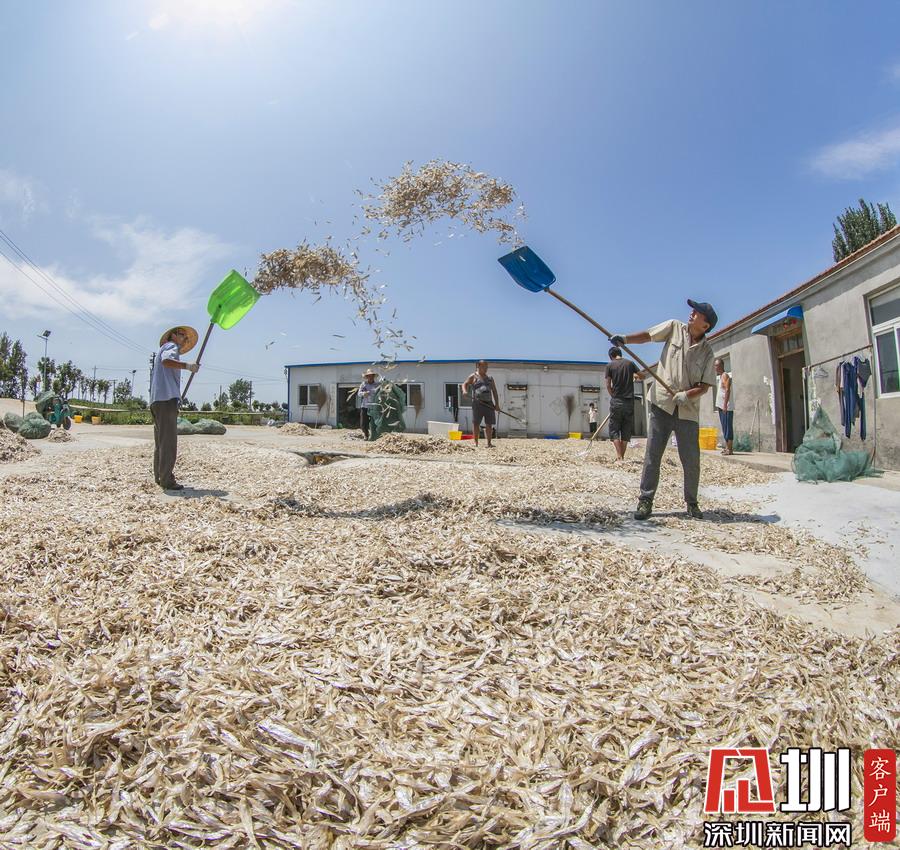 岸上,家家戶戶都在忙著晾曬剛捕撈上來(lái)的毛刀魚(yú)、小白魚(yú)和武昌魚(yú)。