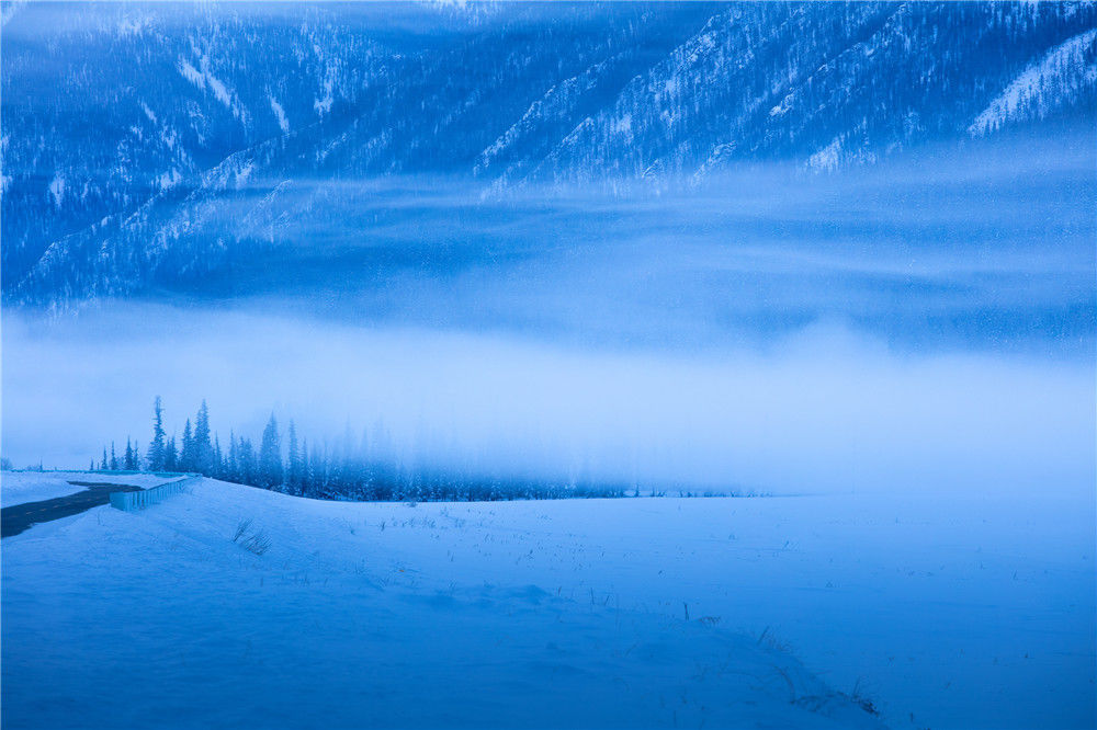 冬季的新疆喀納斯景區(qū)銀裝素裹,雪原、冰湖、霧凇相映,時(shí)而如一幅水墨畫卷,時(shí)而又似一片童話世界。