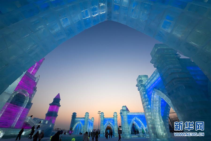 這是哈爾濱冰雪大世界園區(qū)中的景觀(1月5日攝)。每到冬季,天氣寒冷的冰城哈爾濱陸續(xù)迎來(lái)各類冰雕雪雕賽事。從2019年12月7日起,采冰工人們?nèi)找共杀\(yùn)冰、冰景雪雕藝術(shù)家精心雕琢,這些“冰雪造夢(mèng)者”們?cè)趪?yán)寒天氣中辛苦付出,讓一座“冰雪之城”在松花江畔拔地而起,向來(lái)自世界各地的游客展現(xiàn)浪漫絢麗的冰雪奇觀。新華社記者王松攝