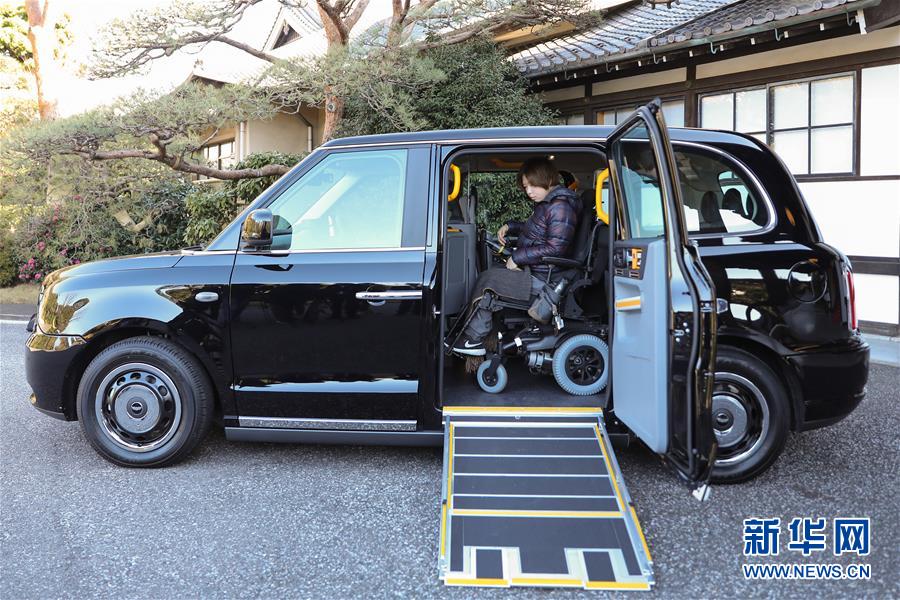 1月10日,在日本東京,一名殘障人士試乘倫敦電動汽車公司的電動出租車TX。  新華社記者 杜瀟逸 攝