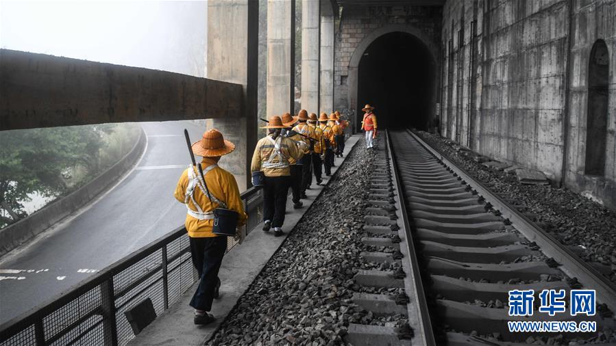 1月14日,百色工務(wù)段白水河橋隧工區(qū)班組成員開(kāi)展巡查工作。在中國(guó)鐵路南寧局集團(tuán)公司百色工務(wù)段白水河橋隧工區(qū),有一個(gè)由14名工人組成的班組。他們常年像“爬山虎”一樣行走攀爬在地形險(xiǎn)峻、云霧繚繞的高山上,負(fù)責(zé)南昆鐵路轄區(qū)路段的搜山掃石工作,清除一切可能危害鐵路行車安全的因素,保障旅客出行安全。新華社記者張愛(ài)林?jǐn)z
