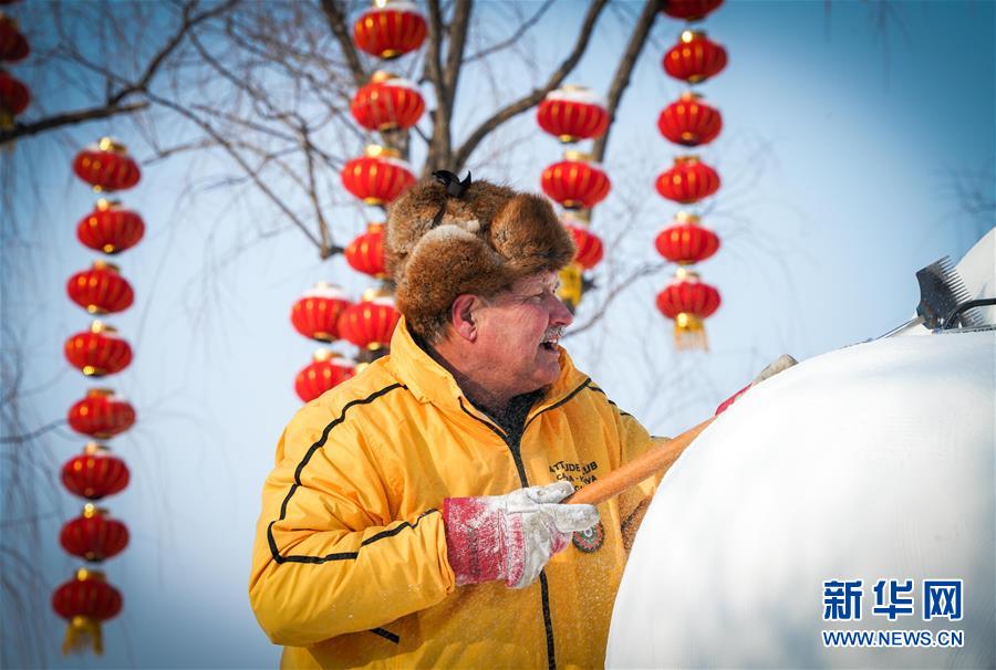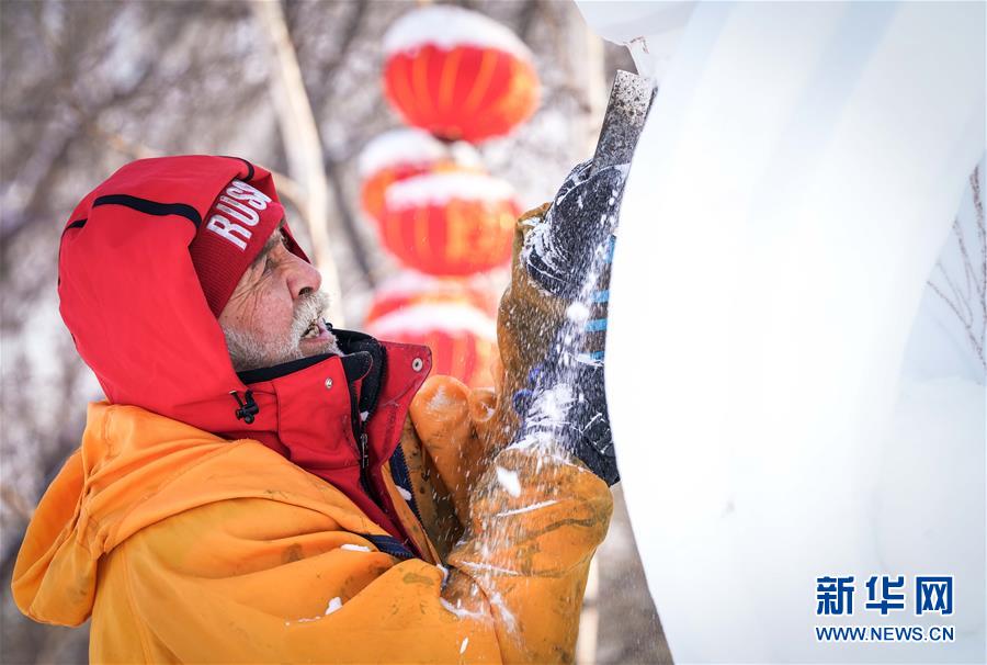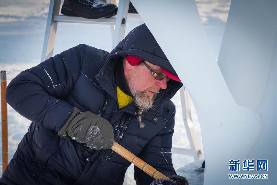 當(dāng)日,“冰城”哈爾濱氣溫低至零下20攝氏度左右,正在參加第二十五屆哈爾濱國際雪雕比賽的選手們冒著嚴(yán)寒進(jìn)行創(chuàng)作。