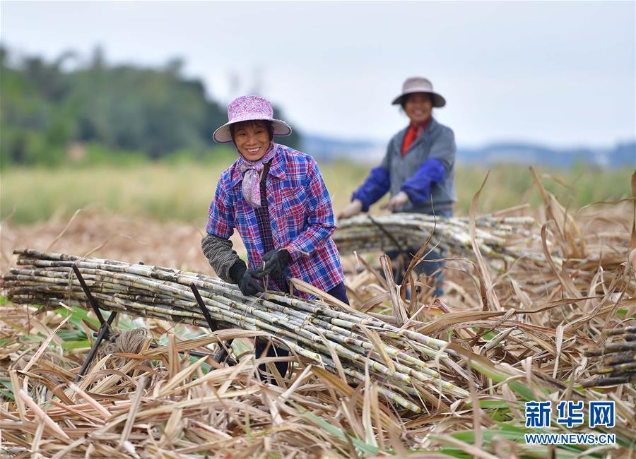 在鹿寨縣鹿寨鎮(zhèn)新村村,村民在搬運收獲的甘蔗(1月11日攝)。新華社記者黃孝邦攝