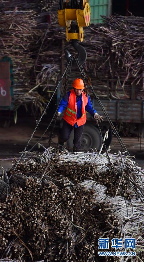1月13日,鹿寨縣一家制糖企業(yè)工人將甘蔗卸下。新華社記者黃孝邦攝