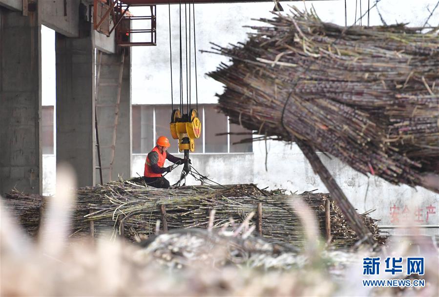 1月13日,鹿寨縣一家制糖企業(yè)工人將甘蔗卸下。新華社記者黃孝邦攝