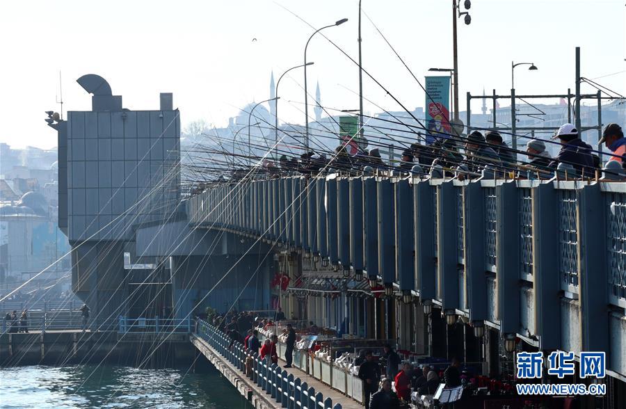 1月14日,在土耳其伊斯坦布爾,人們在海邊垂釣。 近日,土耳其最大城市伊斯坦布爾的氣溫轉(zhuǎn)暖,不少垂釣愛好者來到海邊,享受冬日的暖陽和垂釣的樂趣。 新華社記者 徐速繪 攝