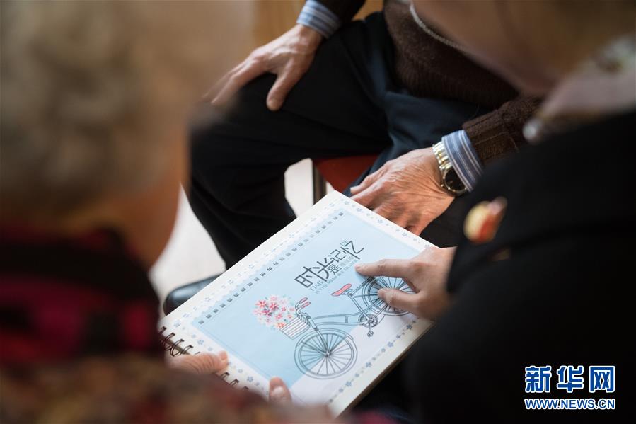 1月17日,張丹俠給王育華送來(lái)她剛剛做好的相冊(cè)。張丹俠說(shuō)看到國(guó)外很多養(yǎng)老機(jī)構(gòu)都有這一暖心之舉,她也嘗試給老人們做了一本。新華社記者 翁忻旸 攝
