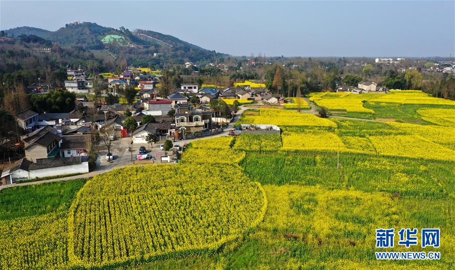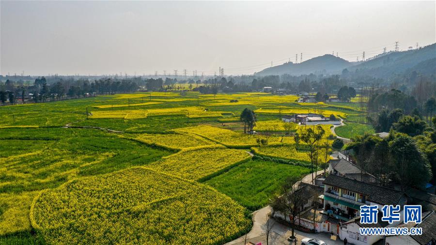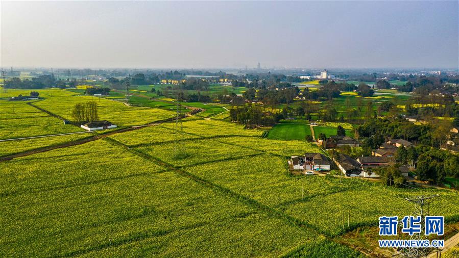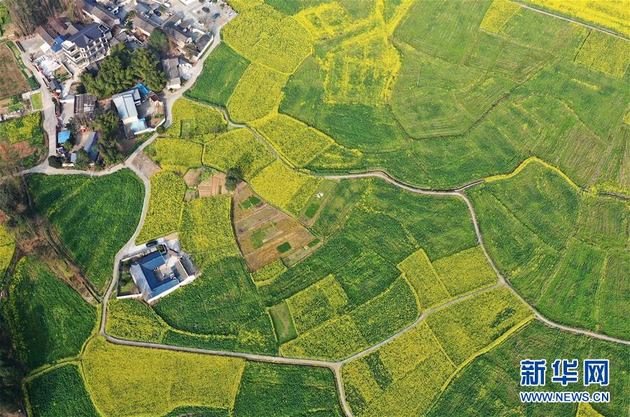 2月25日在四川省崇州市農(nóng)業(yè)產(chǎn)業(yè)功能區(qū)拍攝的油菜花田(無人機(jī)照片)。初春時(shí)節(jié),正值農(nóng)時(shí)。成都平原西部的大邑、崇州等縣市油菜長勢良好,一片生機(jī)盎然的景象。新華社記者王曦?cái)z