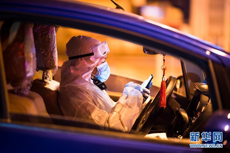 2月29日凌晨,王震接上產(chǎn)婦劉婷后駕車前往武漢市婦幼保健院。新華社記者 肖藝九 攝