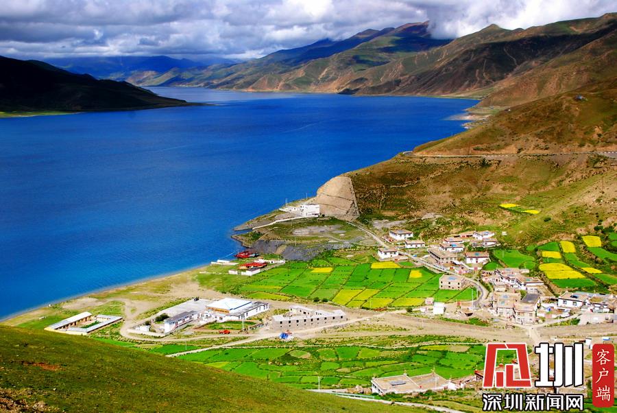 神奇的光線,無垠的草原,彎彎的小溪,金黃的柏楊,山巒連綿起伏,藏寨散落其間,牛羊安詳?shù)爻圆荨?/p>