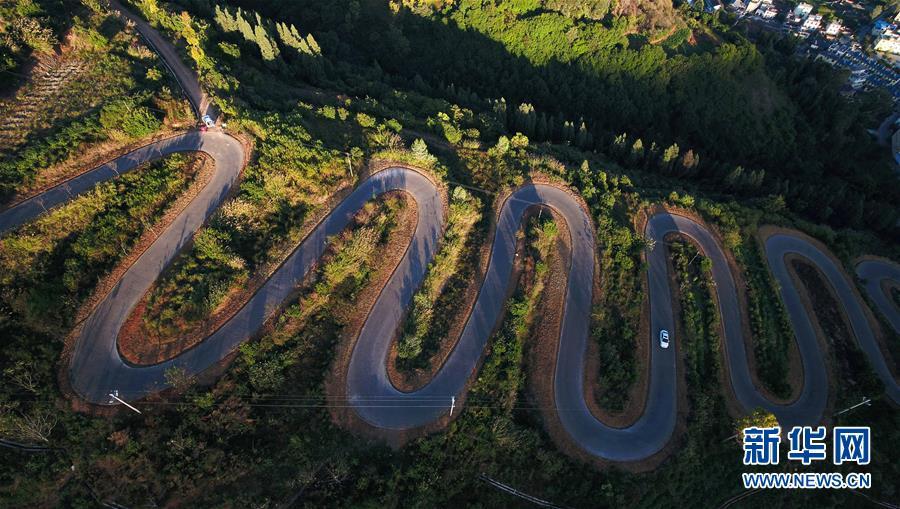 云南宜良“68道拐”位于云南省昆明市宜良縣,是宜良縣城通往靖安哨村的盤山公路。新華社記者藺以光攝