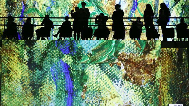 2月27日,在法國(guó)巴黎,人們?cè)凇稄哪?、雷諾阿到夏加爾:地中海之旅》光影藝術(shù)沉浸展的媒體預(yù)展上參觀。《從莫奈、雷諾阿到夏加爾:地中海之旅》光影藝術(shù)沉浸展將于2020年2月28日至2021年1月3日在法國(guó)巴黎舉行。展覽利用數(shù)碼投影技術(shù)為觀眾展示包括莫奈、雷諾阿、夏加爾等在內(nèi)的20位藝術(shù)大師關(guān)于地中海題材的代表作,讓觀眾沉浸在從印象派到現(xiàn)代主義畫(huà)作的視聽(tīng)享受中。新華社記者高靜攝