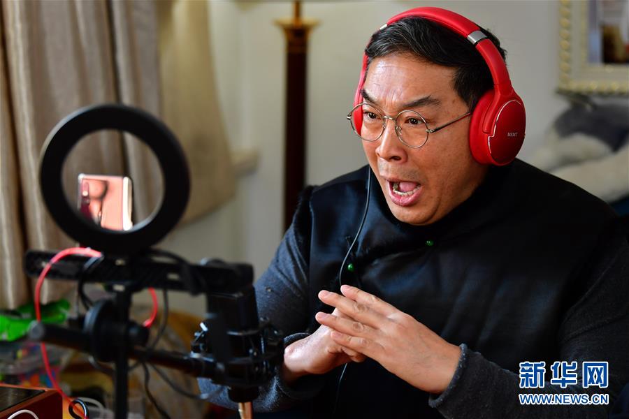 武凌云在直播中為戲迷講解劇本的創(chuàng)作過程(3月5日攝)。 新華社記者 曹陽 攝