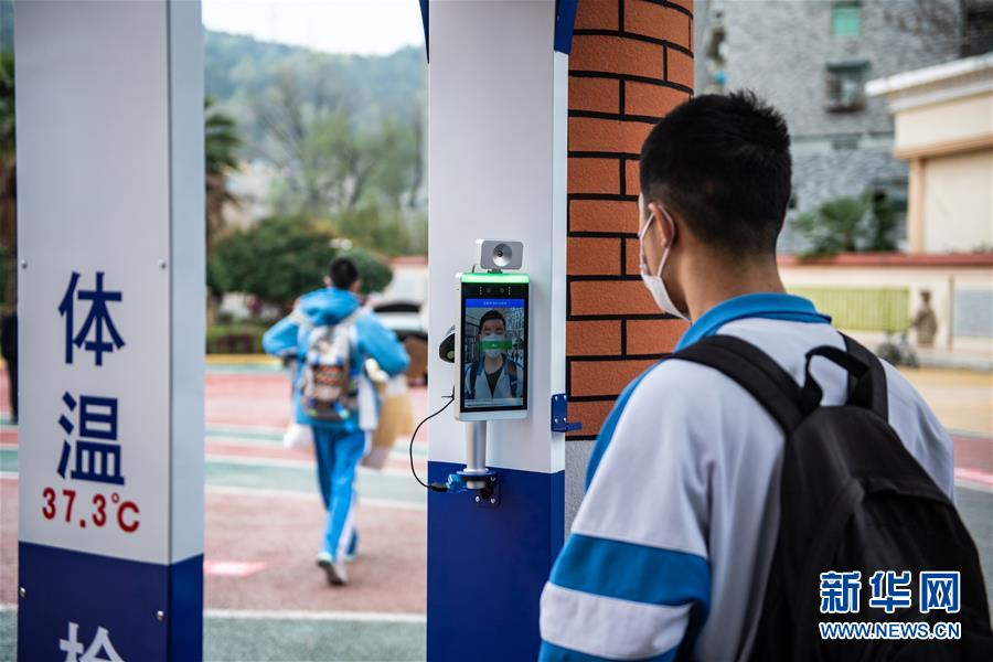 3月15日,烏當(dāng)中學(xué)高三學(xué)生在校門(mén)處測(cè)量體溫。 當(dāng)日,貴陽(yáng)市烏當(dāng)中學(xué)部分高三學(xué)生有序返校,準(zhǔn)備恢復(fù)上課。據(jù)悉,貴州省高三年級(jí)和初三年級(jí)學(xué)生將于3月16日正式開(kāi)學(xué)。 新華社記者 陶亮 攝