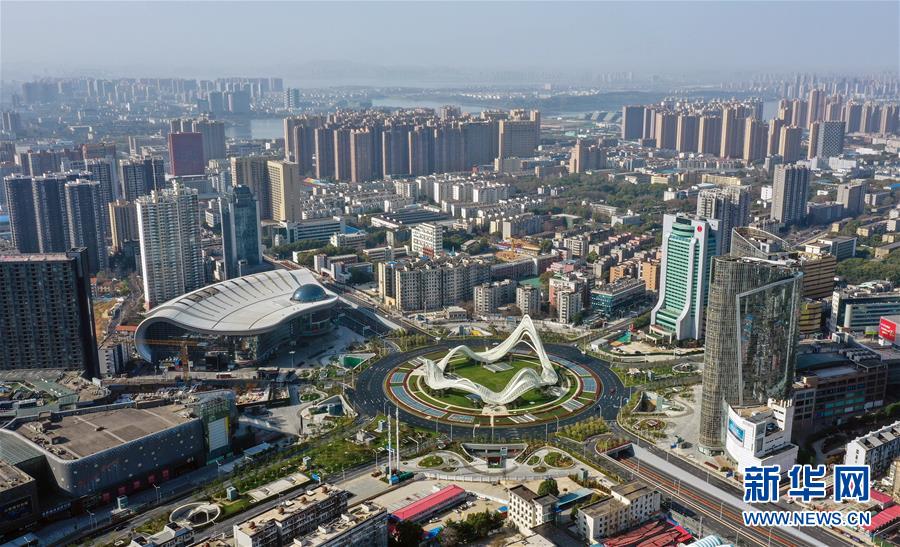 這是3月15日拍攝的武漢光谷廣場環(huán)島(無人機照片)。 3月15日,江城武漢天氣晴好,整個城市沐浴在和煦的春光中。 新華社記者 李賀 攝