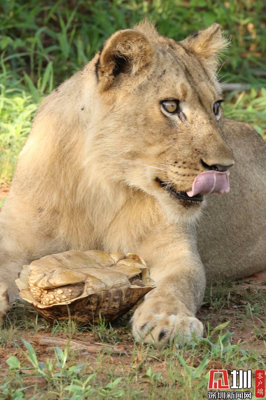 肯尼亞獅子捉了只烏龜當(dāng)“零食”啃不到肉肉好生氣!