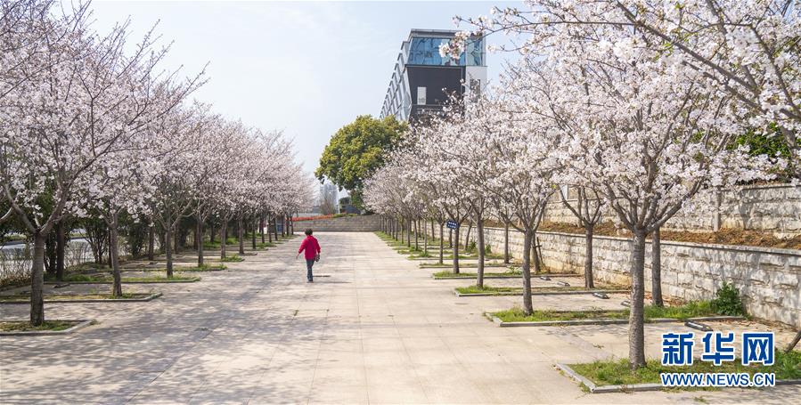 3月19日,在武漢市武昌區(qū)被網(wǎng)友稱(chēng)為“武漢最美停車(chē)場(chǎng)”的湖北日?qǐng)?bào)停車(chē)場(chǎng),一名工作人員從櫻花樹(shù)邊經(jīng)過(guò)。  新華社記者 才揚(yáng) 攝