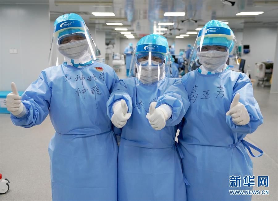 護(hù)士們合影為武漢加油(3月20日攝)。 武漢火神山醫(yī)院重癥醫(yī)學(xué)一科的護(hù)理團(tuán)隊(duì)共50名護(hù)士,其中絕大多數(shù)是80后、90后女性,她們不懼危險,奮戰(zhàn)在抗擊疫情的最前沿“紅區(qū)”。 新華社記者王毓國攝