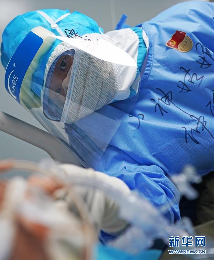 90后護(hù)士孫青在為患者吸痰(3月20日攝)。 武漢火神山醫(yī)院重癥醫(yī)學(xué)一科的護(hù)理團(tuán)隊(duì)共50名護(hù)士,其中絕大多數(shù)是80后、90后女性,她們不懼危險,奮戰(zhàn)在抗擊疫情的最前沿“紅區(qū)”。 新華社記者王毓國攝