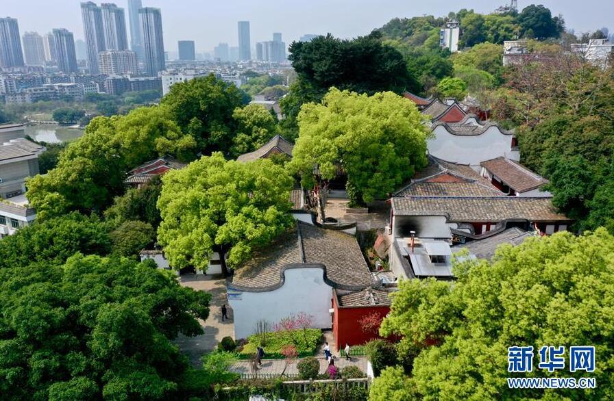 這是3月22日拍攝的福州烏山歷史風(fēng)貌區(qū)一景(無人機(jī)照片)。近日,福建省福州市烏山、三坊七巷等歷史文化街區(qū)內(nèi)草木吐綠,鮮花盛開,掩映著一座座傳統(tǒng)古厝,更顯濃濃春意。新華社記者姜克紅攝
